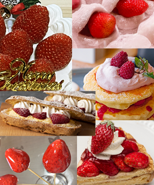 イチゴを使ったスイーツは、ショートケーキやタルト、ムースやイチゴパフェ。和菓子ではイチゴ大福等々‥